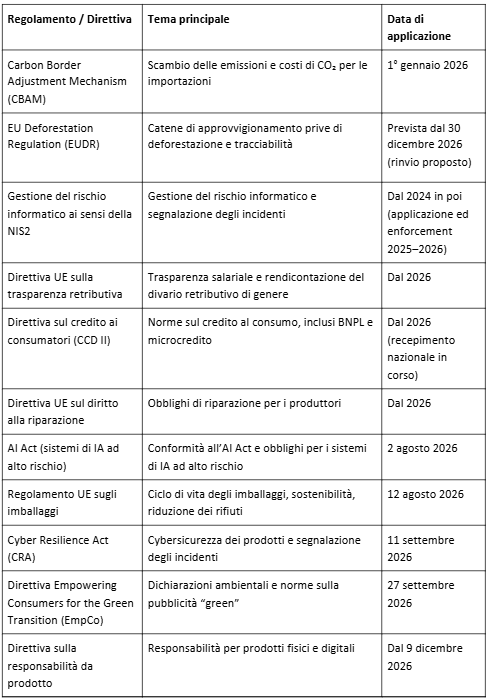 - Panoramica delle modifiche normative UE in vigore nel 2026